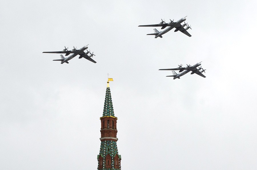 Read morePeople watch as Russia's Air Force strategic bombers, Tu-95, fly over Red Square during a rehearsal for the Victory Day military parade scheduled to take place in Moscow's Red Square on May 9 to celebrate 69 years since the victory in WWII, in Moscow, Russia, on May 7, 2014. #