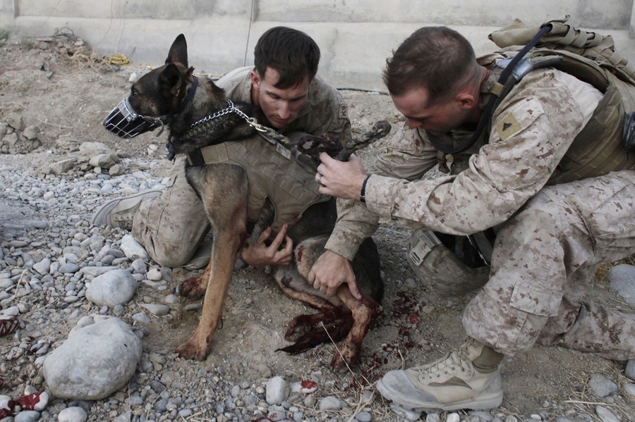 Throughout the course of the long war in Afghanistan, Coalition troops have relied on thousands of military working dogs to help keep them safe, and make their jobs easier. The dogs are trained to detect explosives, to find illegal drugs, to search for missing comrades, or target enemy combatants. Not only are they active on the front lines, but behind the lines they serve as therapy dogs, service dogs, and loyal companions. They also share the same risks as the ground troops, suffering injuries and sometimes death on the battlefields. Gathered here are images of these dogs and their handlers in Afghanistan and back home, from over the past several years, part of the ongoing series here on Afghanistan.