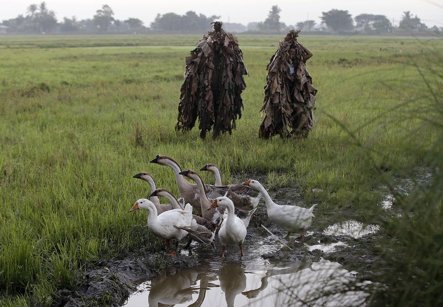 Read moreResidents prepare to make the rounds of houses to ask for candles after covering their faces with mud and donning dried Banana leaves to celebrate the Feast Day of St. John the Baptist at the village of Bibiclat, Aliaga township, Nueva Ecija province in northern Philippines, on June 24, 2014. The unique annual tradition, which dates back to the 1940s, is being observed to pay homage to Saint John the Baptist, whom they claimed saved the lives of residents of this village. #