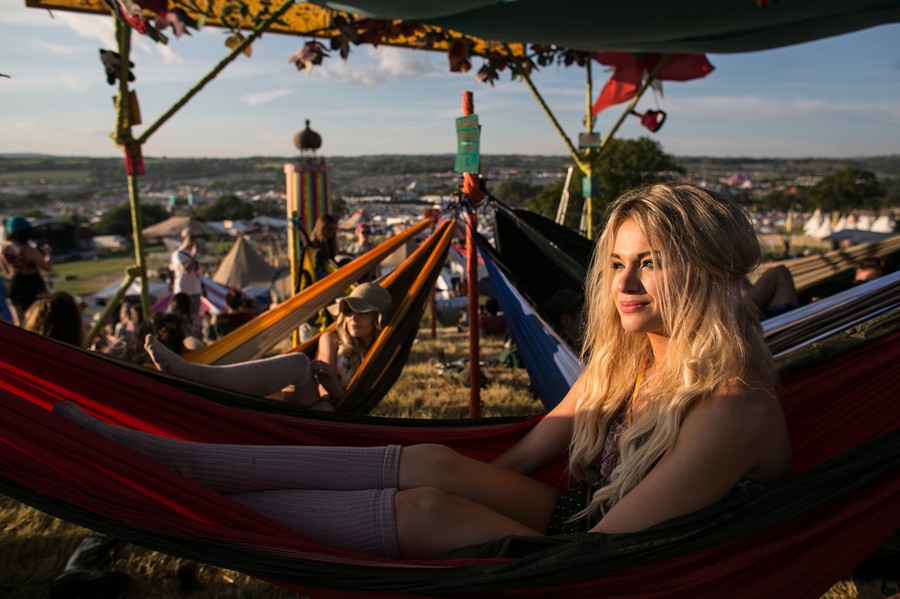 Read moreGeorgie Oxley relaxes in a hammock at Worthy Farm in Pilton on the first day of the 2014 Glastonbury Festival on June 25, 2014 in Glastonbury, England. Gates opened at the Somerset dairy farm that plays host to one of the largest music festivals in the world. Tickets to the event, which is now in its 44th year, sold out in minutes even before any of the headline acts had been confirmed. #