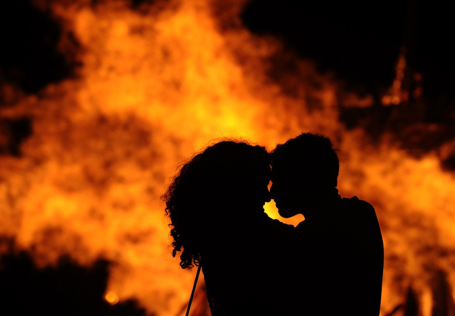Read moreA couple embraces during a party held on the night of the San Juan bonfire on the beach of Playa de Poniente in Gijon early June 24, 2014. Fires formed by burning unwanted furniture, old school books, wood and effigies of malign spirits are seen across Spain as people celebrate the night of San Juan, a purification ceremony coinciding with the summer solstice. #