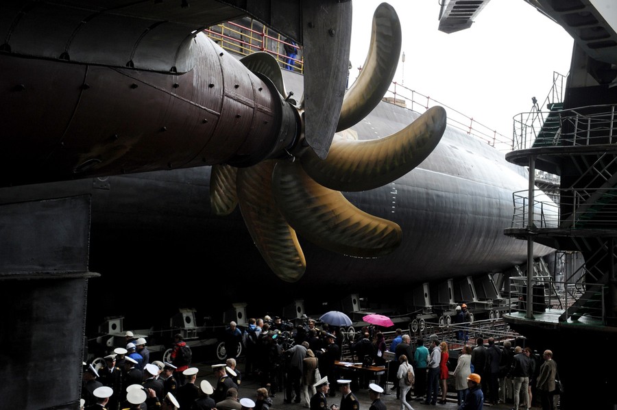 Read moreRussian Navy officers, officials and workers attend a ceremony of launching the Rostov-on-Don Russian diesel-electric torpedo submarine at the Admiralteiskiye verfy shipyard in St. Petersburg, on June 26, 2014. Russia launched one of its new state-of-the-art submarines to be delivered to the Russian Black Sea fleet. The Rostov-on-Don belongs to the Varshavyanka-class (Kilo-class by NATO classification), which is characterized by advanced stealth technology, making it virtually undetectable when submerged, Russian media reported. #