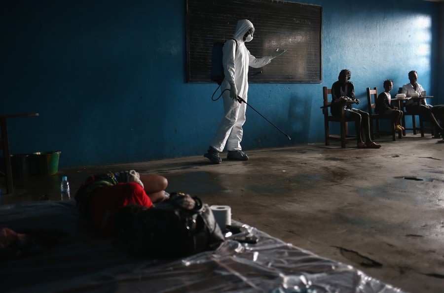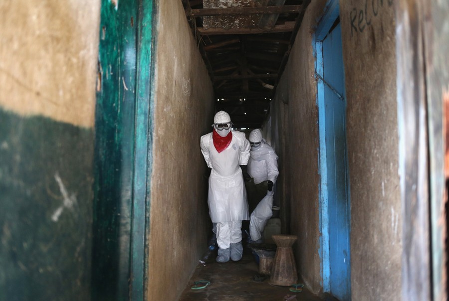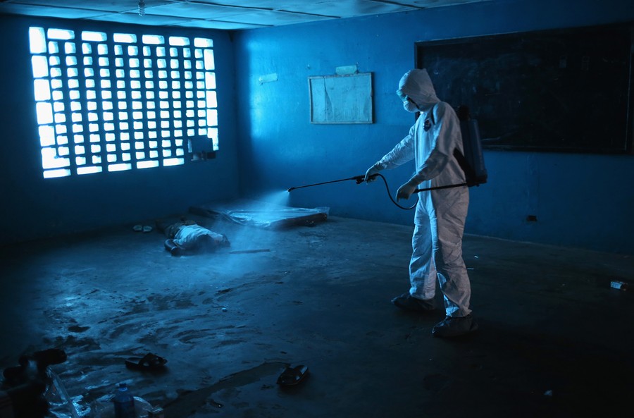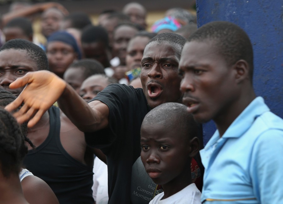 In West Africa, more than 2,200 people have contracted Ebola since March, and 1,200 of them have died from the virus. Liberia has suffered the most deaths to date, with teams of undertakers wearing protective clothing now collecting victims from all over the capital of Monrovia. Poor sanitation, close living quarters, and a lack of education have contributed to the spread of the virus. Among some, a belief has grown that the epidemic is a fraud, and that people are dying from other causes, leading to confrontations between citizens and health workers. Burial teams have been turned away while trying to retrieve bodies from neighborhoods, and isolation wards have been vandalized or overrun by mobs believing the Ebola virus is a hoax. Getty Images photographer John Moore has spent the past week in Liberia, documenting the situation as the country battles to halt the spread of Ebola while struggling to handle the huge rise of infectious, sick, and dying patients.