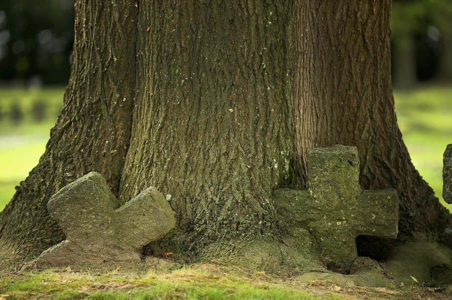 Read moreStone crosses marking the graves of German soldiers are overtaken by time and and the growing trunk of a tree in Hooglede German Military Cemetery on the centenary of World War I on August 4, 2014 in Hooglede, Belgium. #