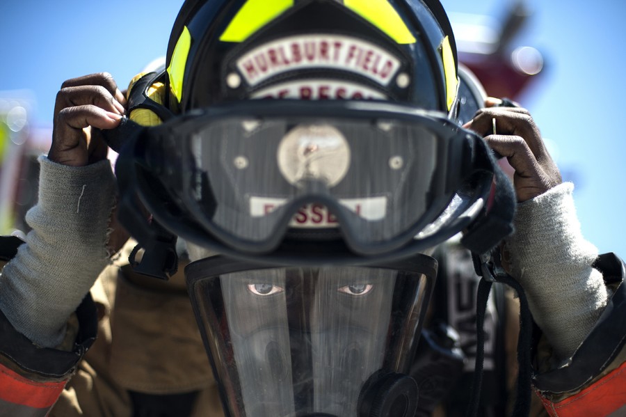 Read moreAirman 1st Class Keith Fussell dons his helmet before training at Hurlburt Field, Florida, on July 17, 2014. Firefighters spent more than an hour training on correct ventilation techniques. #
