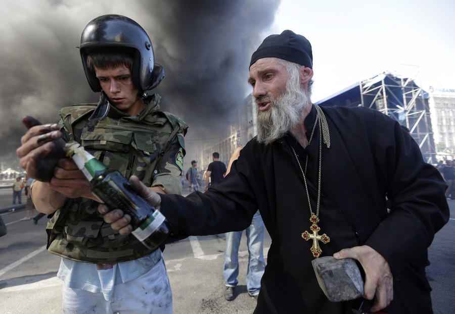 Read moreProtesters hold a Molotov cocktail during clashes with pro-government forces at Independence Square in Kiev, Ukraine, on August 7, 2014. Tensions flared on Thursday on Kiev's Independence Square, the scene of street protests that toppled a Moscow-backed president in February, when protesters still camped there clashed with city workers who tried to clear away their tents. #