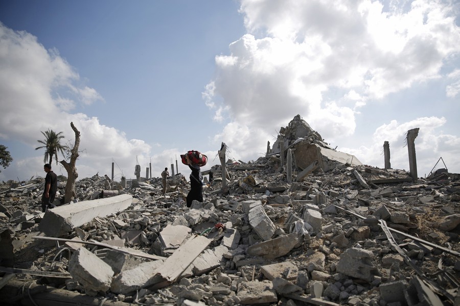 Read moreA Palestinian woman carries belongings as she walks over the rubble of buildings destroyed by what police said were Israeli air strikes and shelling in Khuzaa, east of Khan Younis, in the southern Gaza Strip, on August 3, 2014. #