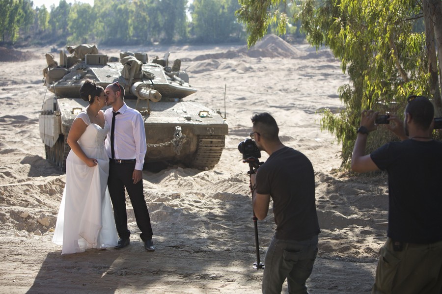 Read moreIsraeli couple Noga and Moshiko Siho have their wedding photo taken in an army staging area on the Israeli Gaza border, near Kibbutz Yad Mordechai, Israel, on August 27, 2014. #