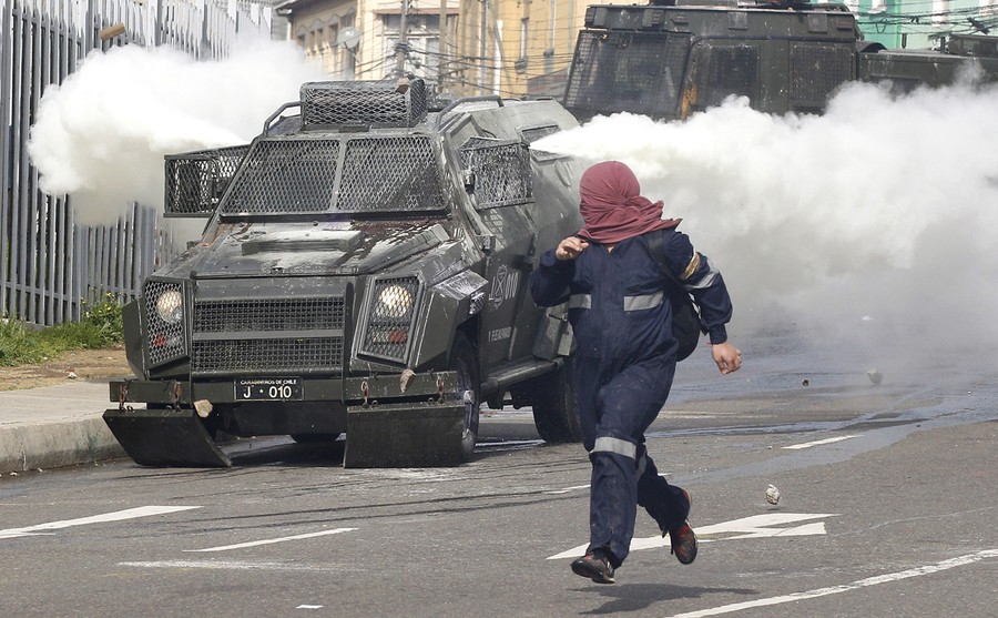 Read moreA masked student runs after clashes broke out with riot police during a demonstration against the government to demand changes in the public state education system, in Valparaiso city, northwest of Santiago, on August 28, 2014. Chilean students have been protesting against what they say is profiteering in the state education system. #