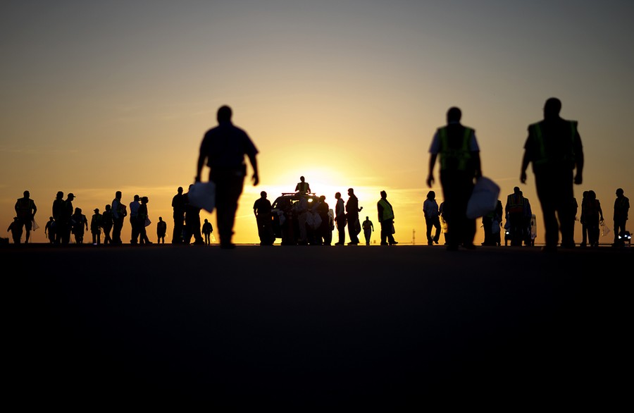 Read moreAirport and airline employees walk the fifth runway at Hartsfield-Jackson Atlanta International Airport to clear debris as the sun rises on August 27, 2014, in Atlanta. The annual Foreign Object Debris Walk drew approximately 100 airline and airport employees volunteering to find and remove debris that could be hazardous to aircraft. The resulting damage from foreign object debris is estimated to cost the aerospace industry $4 billion a year. #