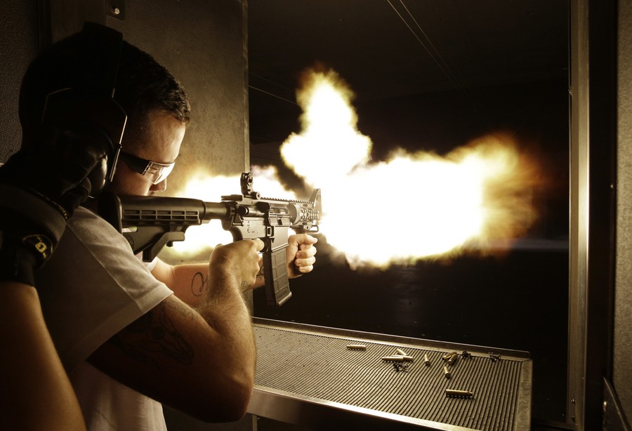 Read moreBrad Whitehead of Manchester, England, fires a fully automatic machine gun at Machine Guns Vegas on August 28, 2014, in Las Vegas. Most visitors to Machine Guns Vegas have already pulled the trigger on an Uzi or an M5, from the behind the controls of their XBox. But with strict gun laws keeping the real thing out of reach for most people, especially outside the U.S., indoor shooting ranges with high-powered weapons have become a hot tourist attraction. #