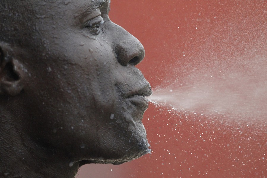 Read moreAhmed Gueye from Senegal prepares before a fight at the Sport Palace during the third stage of the Economic Community Of West African States (ECOWAS) regional wrestling event in Abidjan on August 24, 2014. #