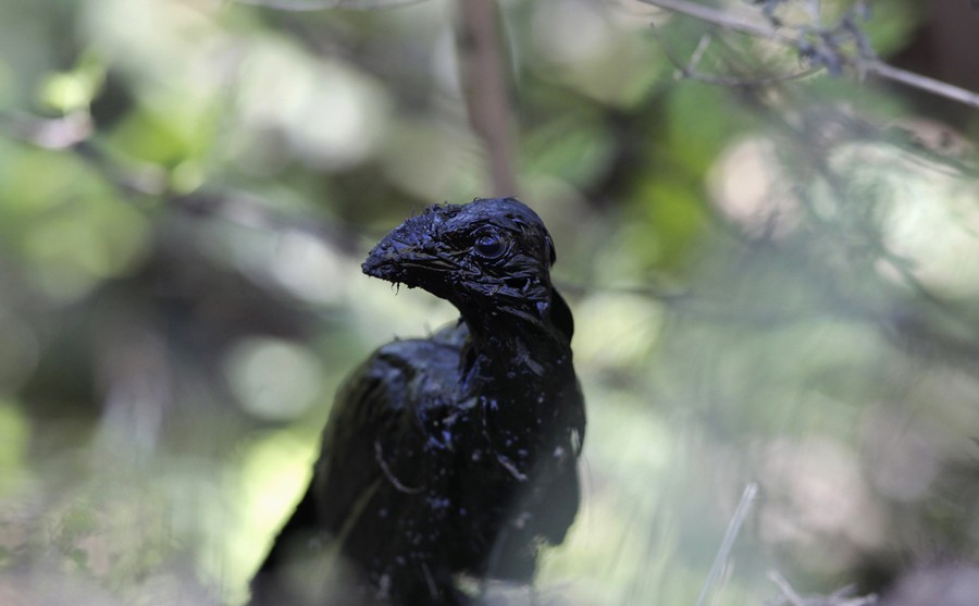 Read moreA bird covered in spilled oil perches on the banks of the San Juan river in Cadereyta, Mexico, on August 26, 2014. An oil pipeline spill that contaminated the river in the northern Mexican state of Nuevo Leon will take months to clean up, the country's top water authority said. The 24-inch Madero-Cadereyta pipeline, owned by national oil company Pemex, was ruptured when thieves attempted to tap into it, the company said. #