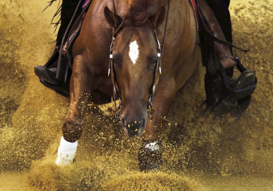 Read moreBritain's Josh Collins riding Spook a Little competes in the team reining competition and 1st individual qualifying at the World Equestrian Games at the d'Ornano stadium in Caen, France, on August 25, 2014. #