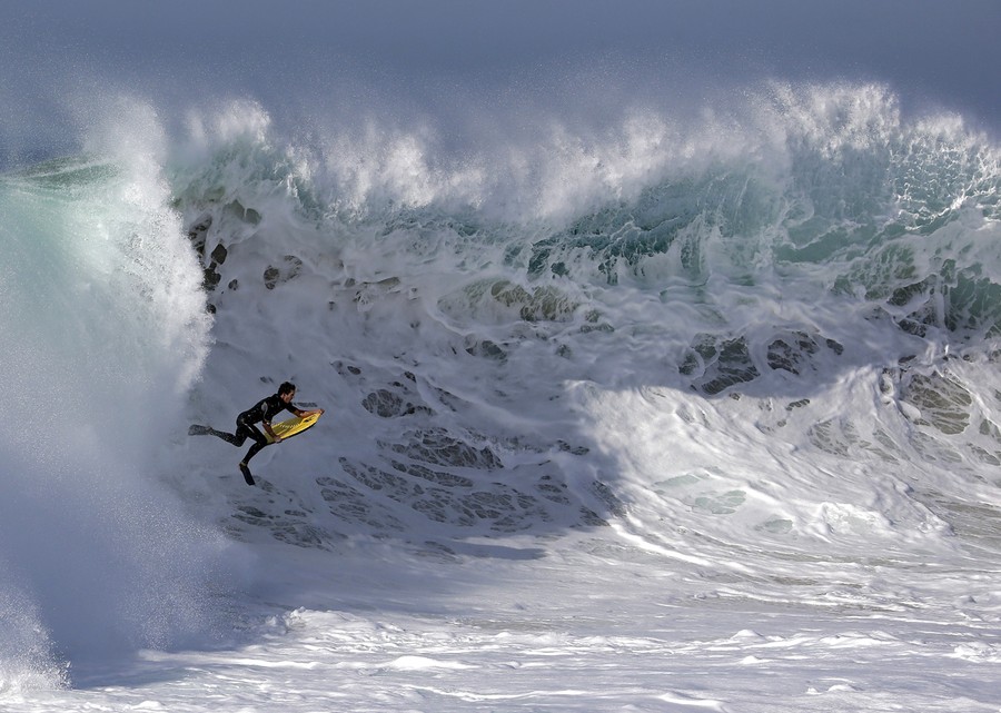 Read moreA boogieboarder rides a wave at the wedge in Newport Beach, California, on August 27, 2014. Southern Californians experienced much higher than normal surf, brought on by Hurricane Marie spinning off the coast of Mexico. #