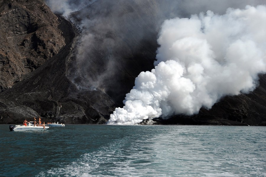 Read moreLava from the Stromboli volcano flows into the sea, on August 9, 2014. Stromboli, one of Europe's most active volcano, is part of the seven-island Eolian Archipelago just off Sicily in southern Italy. #