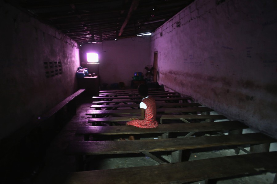 Read moreA girl sits alone in a cinema in the West Point favela on August 15, 2014 in Monrovia, Liberia. The owner said that few people have come since the Ebola outbreak began. Poor sanitation and close living quarters have contributed to the spread of the Ebola virus, which is transmitted through bodily fluids. The epidemic has killed more than 1,000 people in four West African countries. #