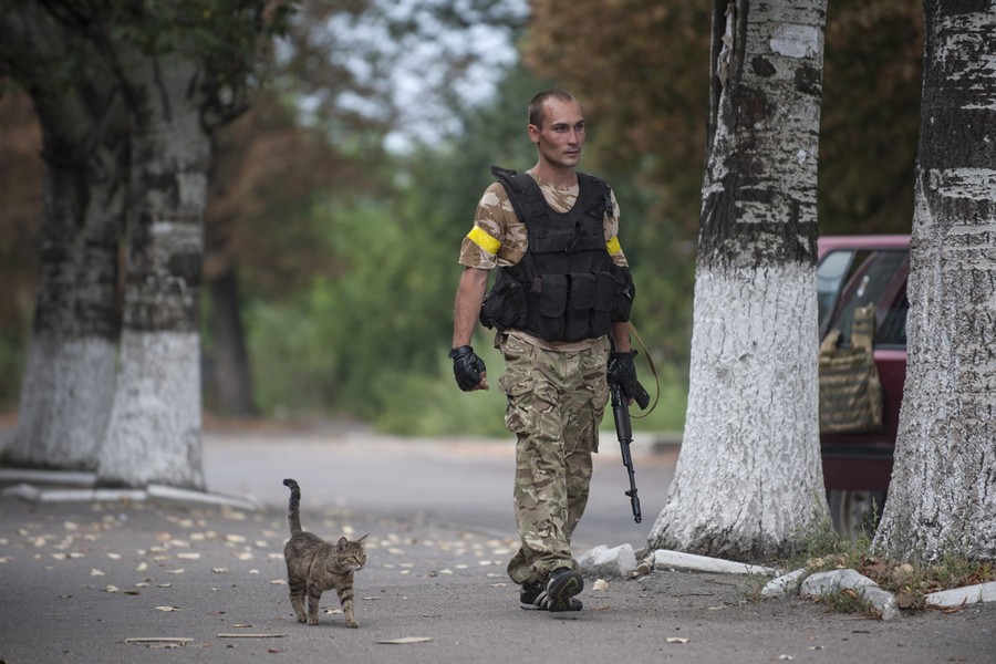 Read moreA Ukrainian government soldier from battalion "Donbass" walks along a street near their positions as a cat follows him in the village of Mariinka near Donetsk, eastern Ukraine, on August 11, 2014. The Red Cross will lead an international humanitarian aid operation into Ukraine's conflict-stricken province of Luhansk with assistance from Russia, the European Union and the United States, Ukraine said Monday. #