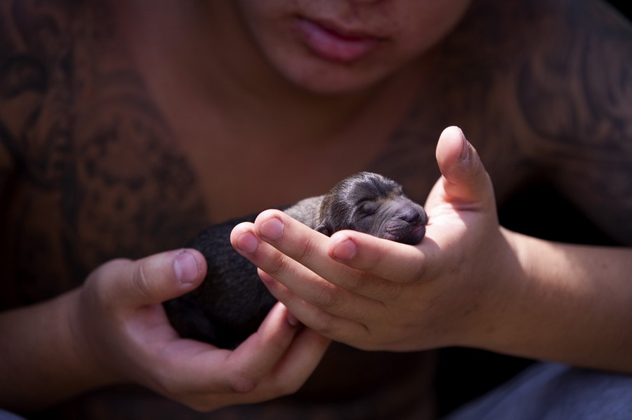 Read moreA volunteer holds a newborn rescue puppy on August 12, 2014, in suburban Beijing, China. Animal activists intercepted a truck that was transporting hundreds of dogs to be slaughtered and sold for meat. With the help of activists and groups, including Humane Society International, the dogs are now receiving post-rescue care. #