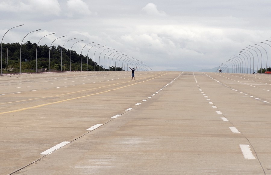 Read moreA man raise his hands in the air as he stands in the middle of the 20-lane highway leading to Myanmar's Parliament during the 47th ASEAN Foreign Ministers' Meeting in Naypyidaw, on August 9, 2014. #