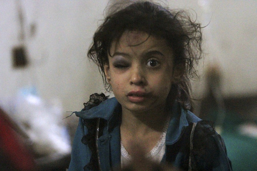 Read moreAn injured girl in a field hospital after what activists say were air strikes by forces loyal to Syria's President Bashar al-Assad in Douma, eastern al-Ghouta, Syria, on September 19, 2014. #