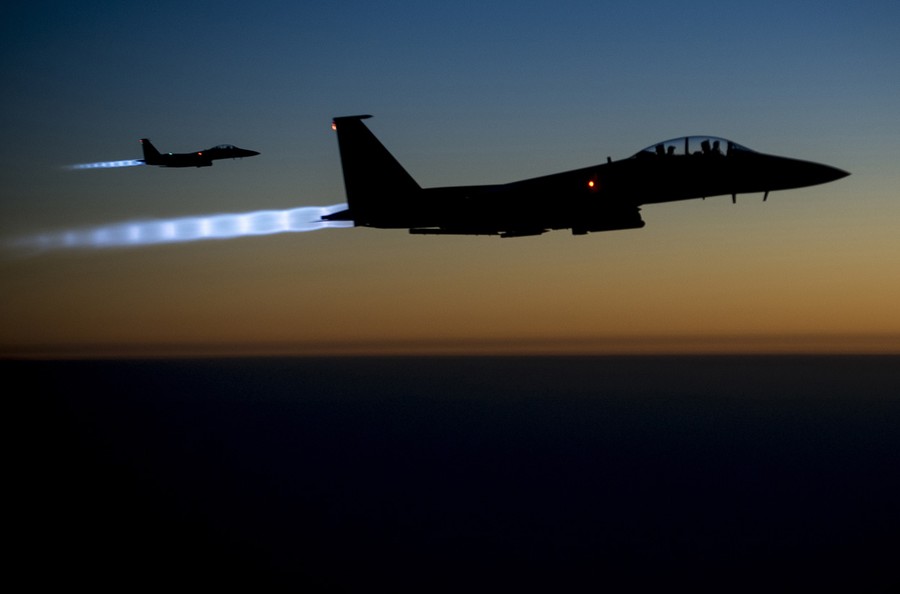 Read moreA pair of U.S. Air Force F-15E Strike Eagles fly over northern Iraq after conducting airstrikes in Syria on September 23, 2014. These aircraft were part of a large coalition strike package that was the first to strike ISIS targets in Syria. #
