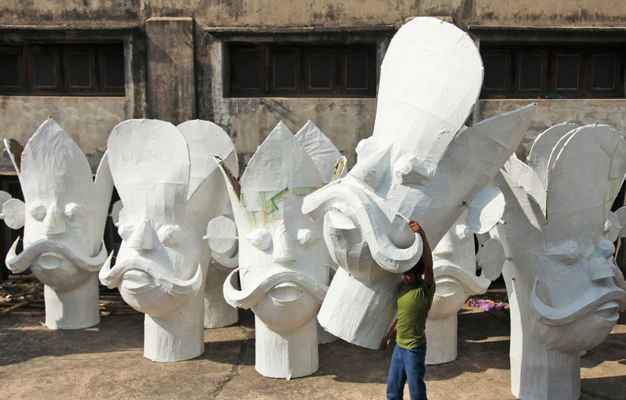 Read moreAn artisan carries an effigy of mythical demon king Ravana that will be burned during the Dussehra festival in Jammu, India, on September 25, 2014. The festival commemorates the victory of Hindu god Rama over demon king Ravana, and a celebration of the victory of good over evil. #