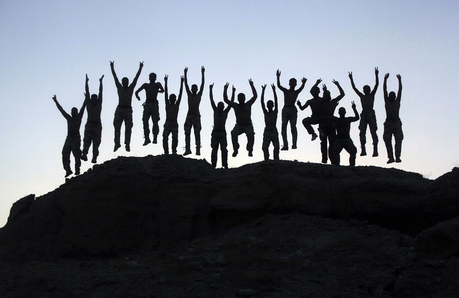 Read moreShi'ite fighters, who joined the Iraqi army to fight against militants of ISIS, celebrate after the end of their training in the desert region between Kerbala and Najaf, south of Baghdad, on September 25, 2014. #