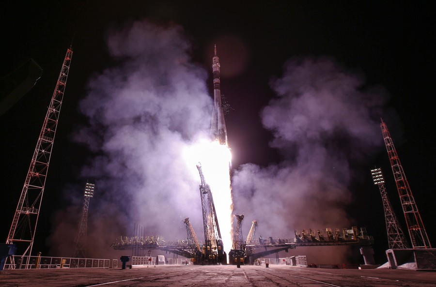 Read moreThe Soyuz-FG rocket booster with Soyuz TMA-14M space ship carrying a new crew to the International Space Station blasts off at the Russian leased Baikonur cosmodrome in Kazakhstan on September 26, 2014. The Russian rocket carried U.S. astronaut Barry Wilmore, Russian cosmonauts Alexander Samokutyaev and Elena Serova. #