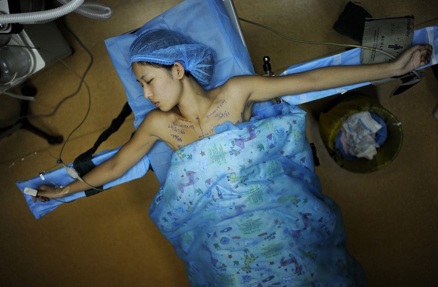 Read moreFeifei, 21, undergoes breast implant surgery at a hospital in Hefei, Anhui province, China. Feifei, who is a third-year university student and a part-time model, received a free breast implant surgery which costs about 300,000 yuan ($48,881), in return for advertising for the hospital. Around 10 days after the operation, she won a prize at a local beauty contest, reported local media. #