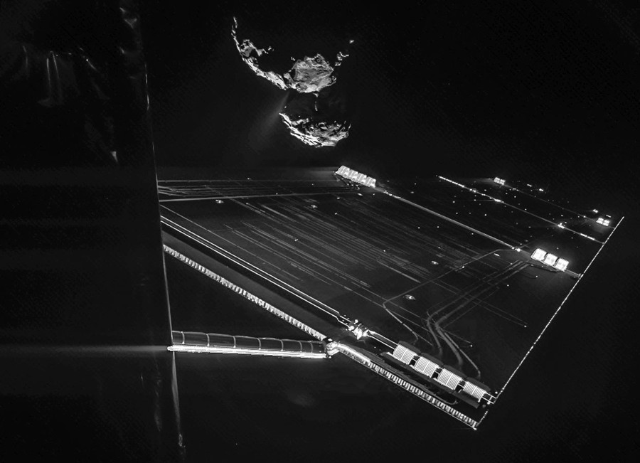 Read moreThe Philae lander, still attached to the European Space Agency's Rosetta spacecraft, snapped a selfie at comet 67P/Churyumov-Gerasimenko from a distance of about 16 km from the surface of the comet. Philae will be deployed on November 12, landing on the comet about seven hours later. #