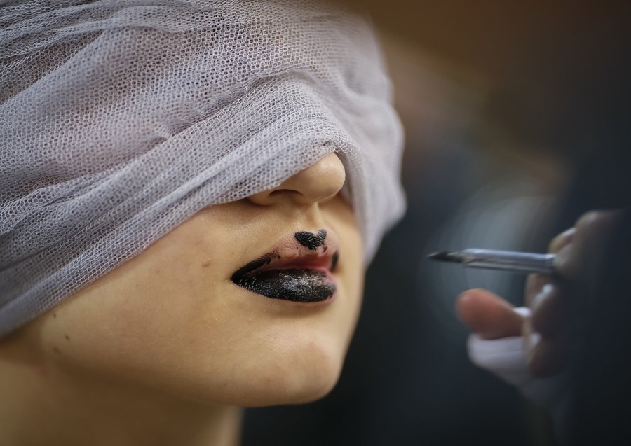 Read moreBlind student Marina Gimaraes, of the Association of Ballet and Arts for the Blind, warms up backstage before performing "Corsario e Paquitas" during celebrations marking Brazil's Children's Day at the Italo Theater in Sao Paulo on October 12, 2014. The Association was founded by Brazilian ballerina and physiotherapist Fernanda Bianchini in 1995, when she decided to teach classical ballet to the blind for free. Since then, her classes have been opened to the deaf and mute, and even to children and youths with other handicaps. Bianchini says that the school's main goal for their students is for them to improve their posture, balance, spatial sense and self-esteem, in addition to breaking barriers and prejudices about people with handicaps. #