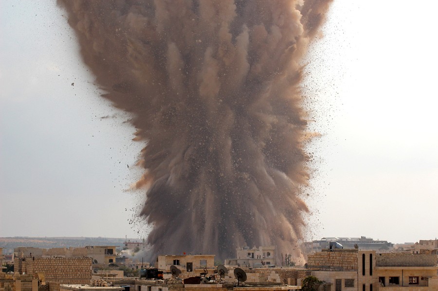 Read moreA picture taken on October 14, 2014 shows a large explosion allegedly hitting a Syrian army military outpost in the southern part of the city of Maarat al-Numan in Idlib province. The explosion was reportedly caused by rebel fighters belonging to Ahrar al-Sham brigade of the Islamic Front coalition who dug a tunnel underneath the outpost and loaded it with explosives. #