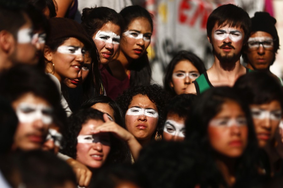 Read moreTheater students take part during a protest in support of missing Ayotzinapa Teacher Training College Raul Isidro Burgos students, outside the building of the office of Mexico's Attorney General in Mexico City October 15, 2014. On September 26, police allegedly linked to a criminal gang shot dead at least three students and abducted dozens of others during clashes in the southwestern city of Iguala. Forty-three of the students are still missing. #