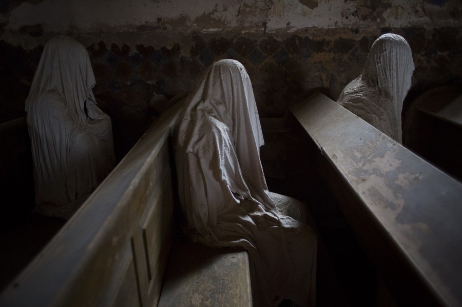 Read moreGhost statues by artist Jakub Hadrava are placed at the St. George's church near Plzen on November 16, 2014 in Lukova, Czech Republic. Artist Jakub Hadrava created 32 empty plaster life-size ghost statues, which symbolize Sudeten Germans who lived in the village. St. George's church, which was built in the north-western Bohemian region of the Czech Republic in 1352, fell into disrepair after the roof collapsed during a funeral service in 1968. Hadrava's aim is to make the church more attractive for visitors and to gain money for renovation work. According to voluntary church manager Petr Koukl, about 2,500 people from around the world have been visiting the church this year. #