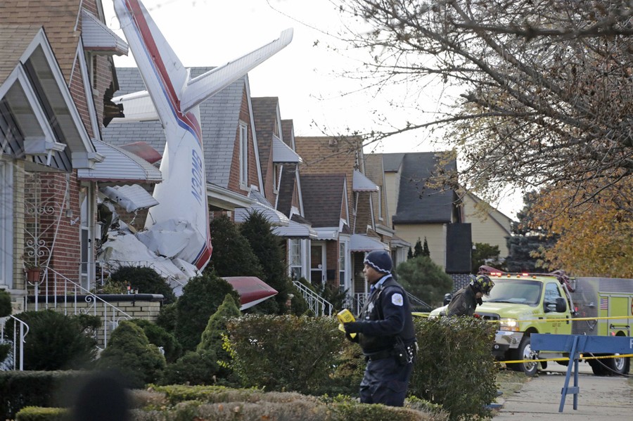 Read morePolice and fire officials walk near a small twin-engine cargo plane that crashed into a home on Chicago's southwest side on November 18, 2014. The Aero Commander 500 that had taken off from Midway International Airport slammed into the front of the home and plunged into the basement. Fire Department spokesman Larry Langford says two occupants of the home were unhurt. The pilot was killed in the crash. #
