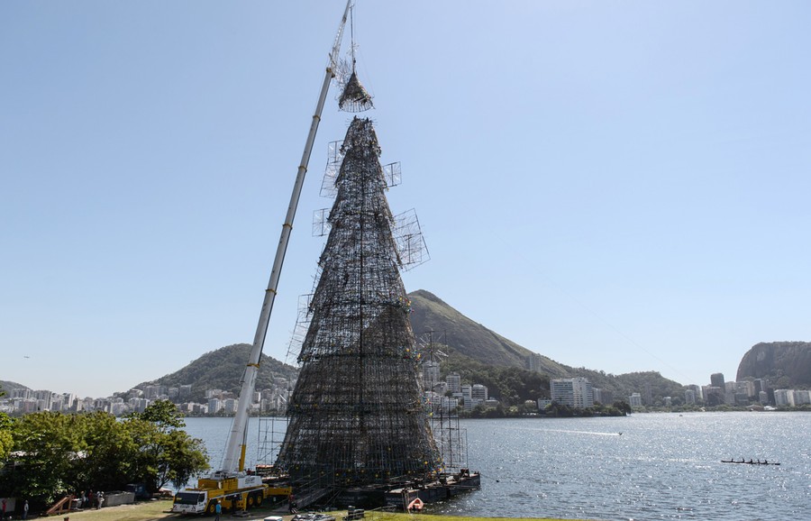 Read moreAn 85-meter-high floating Christmas tree is assembled at the Rodrigo de Freitas lagoon in Rio de Janeiro, Brazil, on November 19, 2014. The tree is recognized as the world highest floating Christmas tree by the Guinness World Records and will be inaugurated on November 29, 2014. #