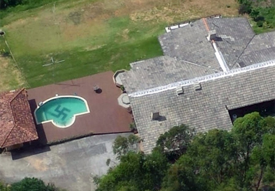 Read moreAn undated handout photo released by Santa Catarina State Police on December 6, 2014 shows a swastika at the bottom of a swimming pool in Vale do Itajai in Santa Catarina state, Brazil. According to local media reports, police officers in a helicopter taking part in an anti-kidnapping operation spotted the Nazi symbol by chance. A subsequent police investigation revealed that the swastika had been there for 13 years. No charges have been filed against the homeowner, who told police he was not promoting Nazism, as the pool was situated on private land. #