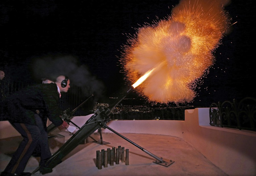 Read moreCarabiniers of Monaco's Prince Albert II fire canons to announce the birth of twins of Prince Albert II of Monoco and Charlene, in front of the Monaco Palace on December 10, 2014. Princess Charlene of Monaco gave birth on Wednesday to a boy and a girl, the royal couple's first children, an aide to the royals said. According to Monaco's Constitution the boy, named Jacques, will be first-in-line to the throne, and not his twin sister, Gabriella. #