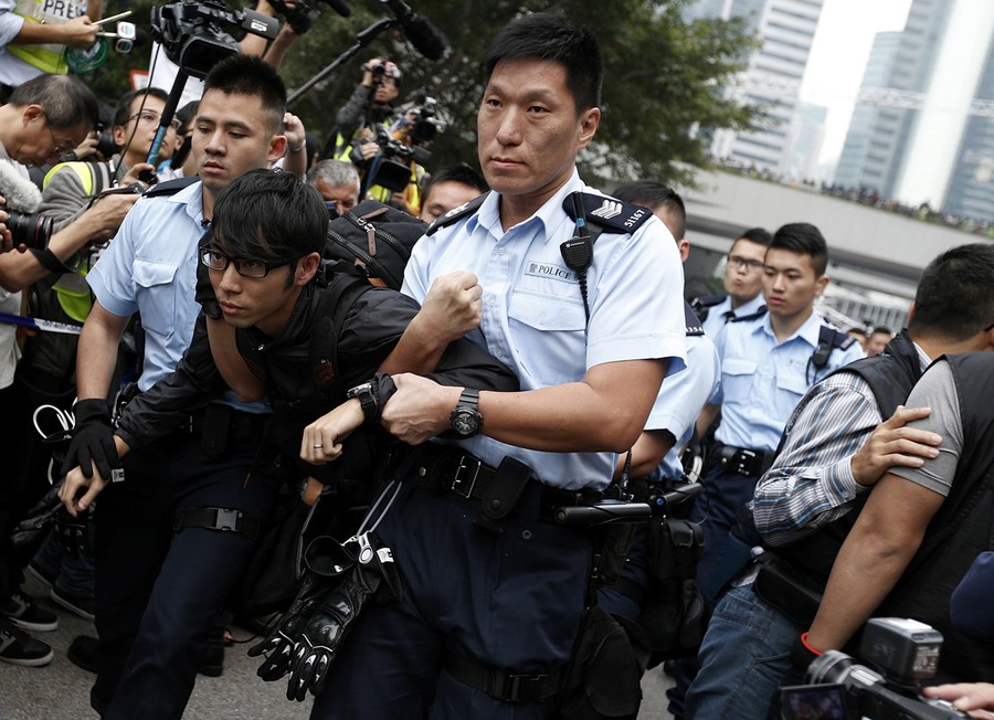 Read moreA demonstrator is taken away by policemen, at an area previously blocked by pro-democracy supporters, outside the government headquarters in Hong Kong, on December 11, 2014. Hong Kong authorities started on Thursday clearing the main pro-democracy protest site that has choked roads into the city's most economically and politically important district for more than two months as part of a campaign to demand free elections. #