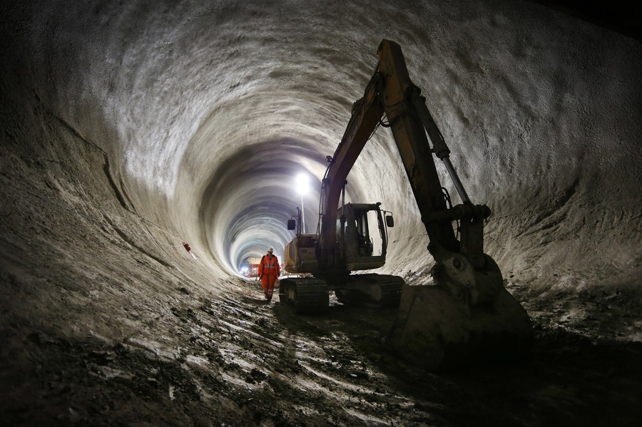 Read moreA worker walks past a digger in the partially completed Crossrail rail tunnel that will become Bond Street station on December 8, 2014 in London, England. Crossrail is Europe's biggest infrastructure project. A total of 26 miles of train tunnels are being built beneath the streets of the capital by eight tunneling machines. When complete in 2018, ten new stations in central and southeast London will increase the capitals rail capacity by 10 per cent and bring an extra 1.5 million people to within 45 minutes of central London. #