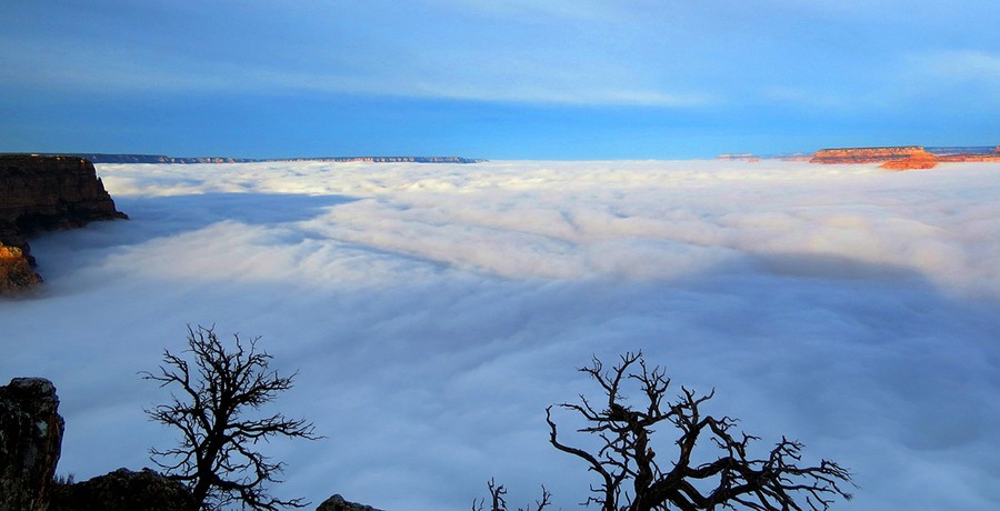 Read moreThis photo provided by the National Park Service shows dense clouds at the south rim of the Grand Canyon on December 11, 2014 in Arizona. A rare weather phenomenon on Thursday had visitors looking out to a sea of thick clouds. The total cloud inversion is expected to hang over the Grand Canyon just below the rim throughout the day. #