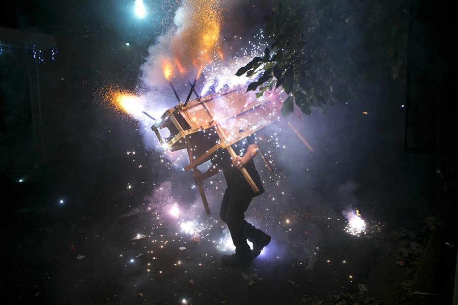Read moreA man runs with a "toro encuetado," a structure resembling a bull and covered with exploding fireworks, as part of the celebrations in honor of the Virgin of the Immaculate Conception on her feast day in Managua, Nicaragua, on December 8, 2014. The Virgin of the Immaculate Conception is Nicaragua's patron saint. #