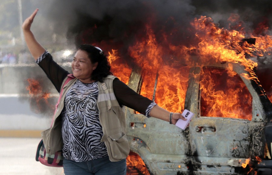 Read moreA woman gestures as she walks past a traffic patrol vehicle set ablaze by angry demonstrators during a protest demanding justice and clarification for the disappearance of 43 students from Ayotzinapa, in Chilpancingo, Guerrero State, Mexico, on January 15. Mexico's government Wednesday slammed as "baseless" military wrongdoing alleged by the parents of 43 college students missing and feared dead, rejecting the possibility of an investigation. Authorities say the young men who were studying at a teacher's college were abducted by Iguala police officers on September 26 and delivered to the Guerreros Unidos drug gang, whose henchmen confessed to killing them. #