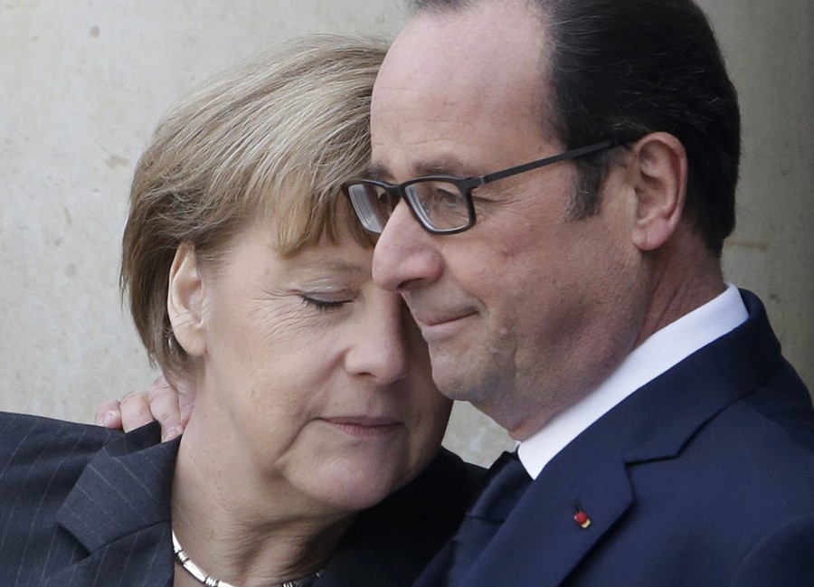 Read moreFrench President Francois Hollande embraces German Chancellor Angela Merkel, as she arrives at the Elysee Palace, Paris, on January 11. A rally of defiance and sorrow, protected by an unparalleled level of security, honored the 17 victims of three days of bloodshed in Paris that left France on alert for more violence. #