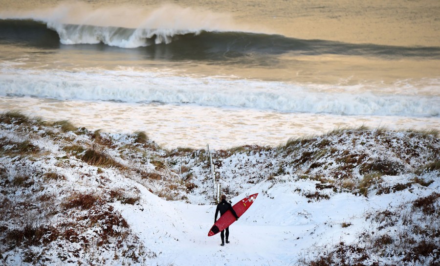Read morePro surfer Alastair Mennie makes his way towards the beach at Portrush on January 14 in Antrim, Northern Ireland. The province experienced heavy snowfall as a cold weather front hit the northern part of the United Kingdom, causing major traffic disruption and school closures. #