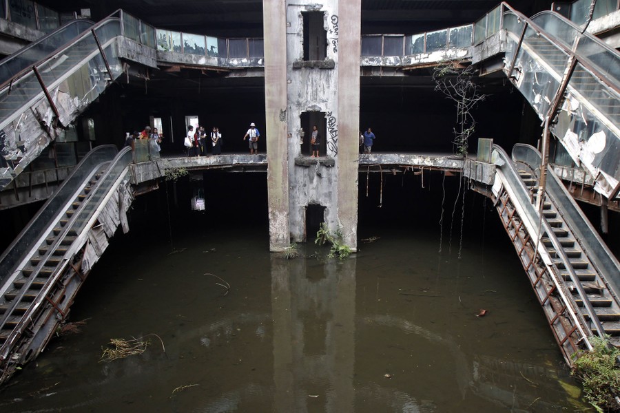 Read morePeople gather to see workers collecting fish inside an abandoned department store in Bangkok on January 13. Staff from Bangkok Metropolitan Administration (BMA) office were catching fish on Tuesday at the ground floor of the roofless New World department store that was closed down in 1997. Thousands of fish such as catfishes, fancy carps as well as black and red tilapias were released into the ground floor of the building, flooded with rainwater, as local vendors tried to control mosquitoes in the area, local media reported. BMA recently decided to remove the fish and release the water. #