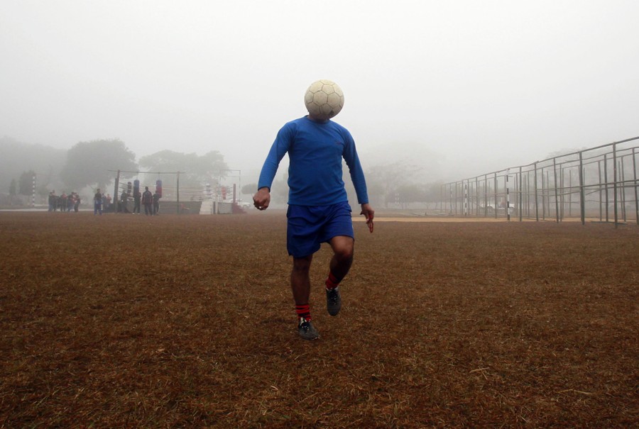 Read moreA man controls a ball during his soccer practice in a public park on a foggy morning in Agartala, capital of India's northeastern state of Tripura, on January 12. #