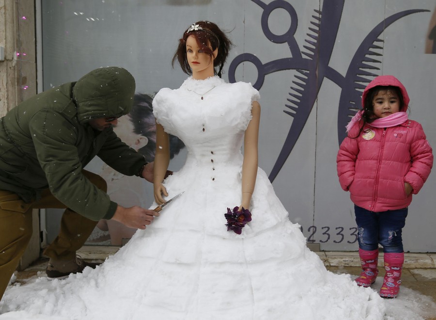 Read moreA hairdresser uses a knife to carve a snow sculpture in front of his shop in Basour village, east of Beirut, on January 9. A storm buffeted the Middle East with blizzards, rain and strong winds on Wednesday, keeping people at home across the region and raising concerns for Syrian refugees facing freezing temperatures in flimsy shelters. #