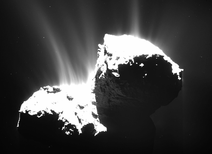 Read moreThe Rosetta spacecraft used a wide-angle camera to acquire this image of Comet 67P/Churyumov-Gerasimenko from a distance of 30 kilometers. The nucleus is deliberately overexposed in order to reveal the faint jets of activity. Photographed on on November 22, 2014, released on January 16. #